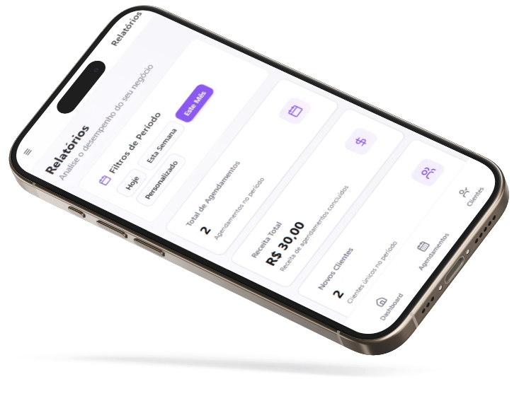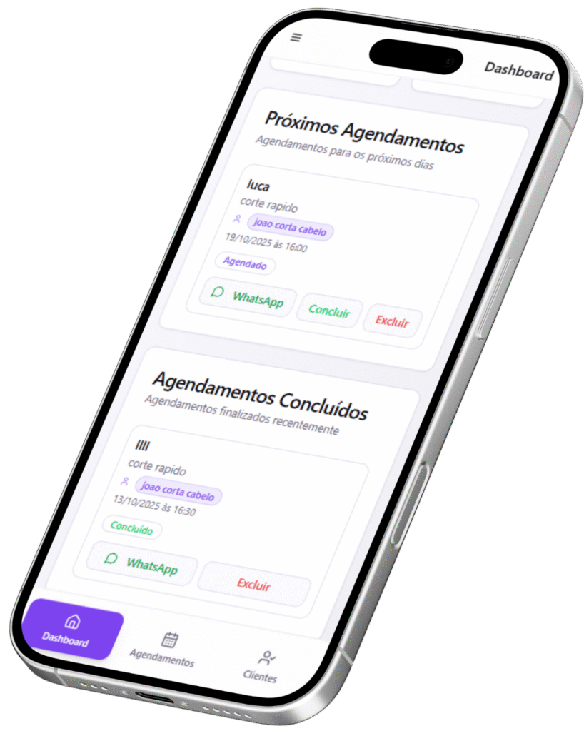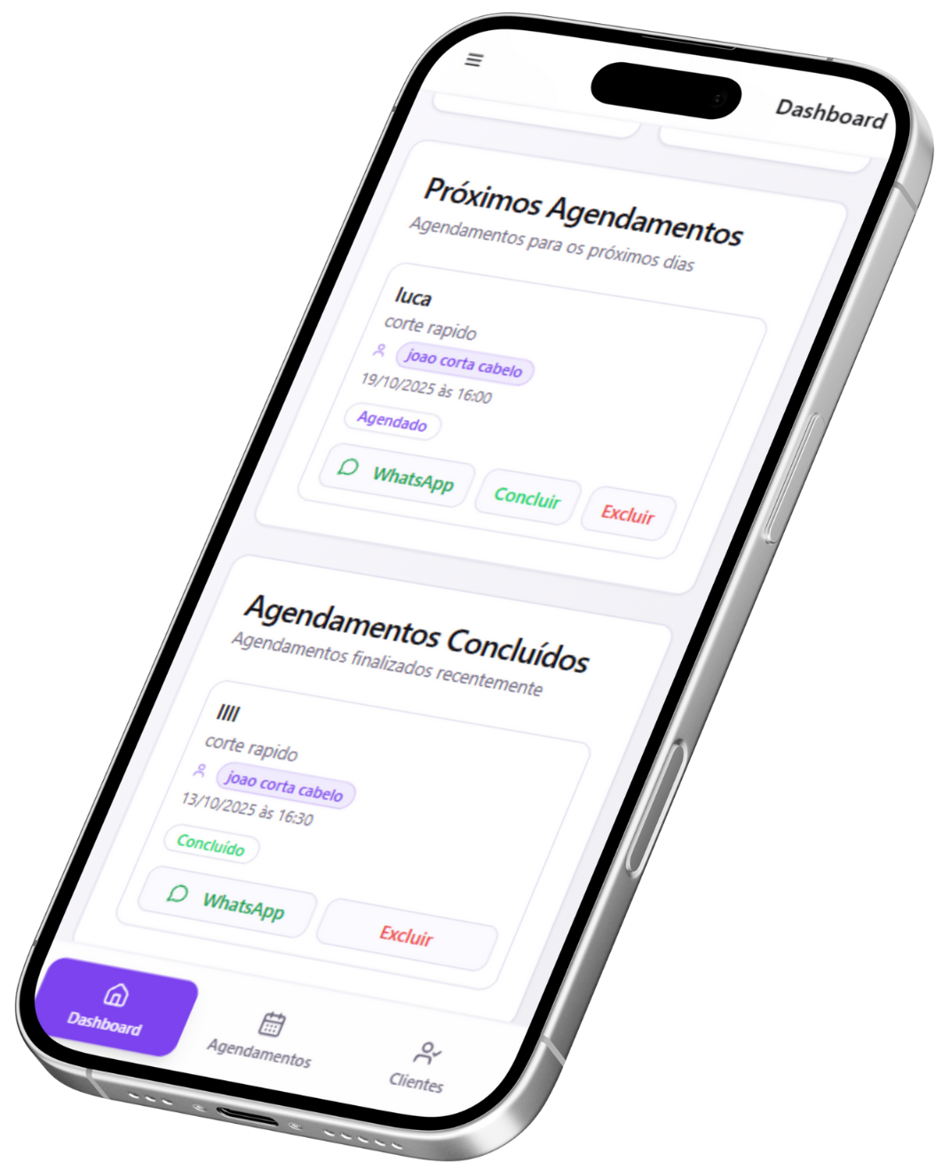 Pare de perder 1h30 por dia no WhatsApp. Automatize sua agenda e veja seu negócio rodar sozinho, direto do celular.