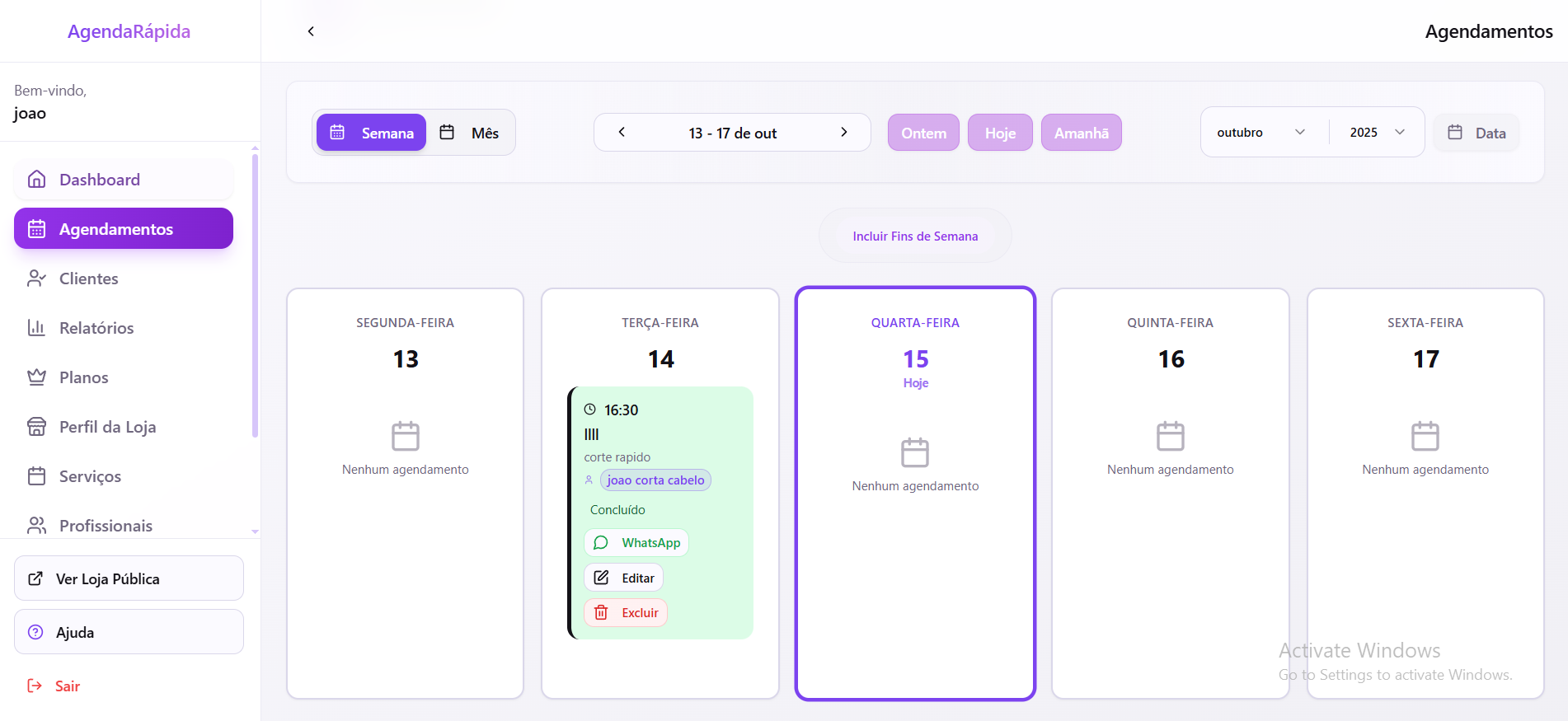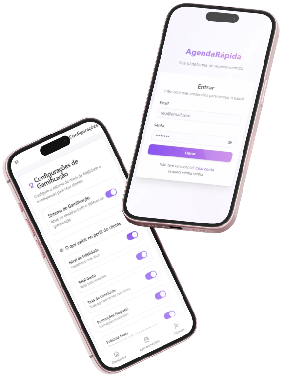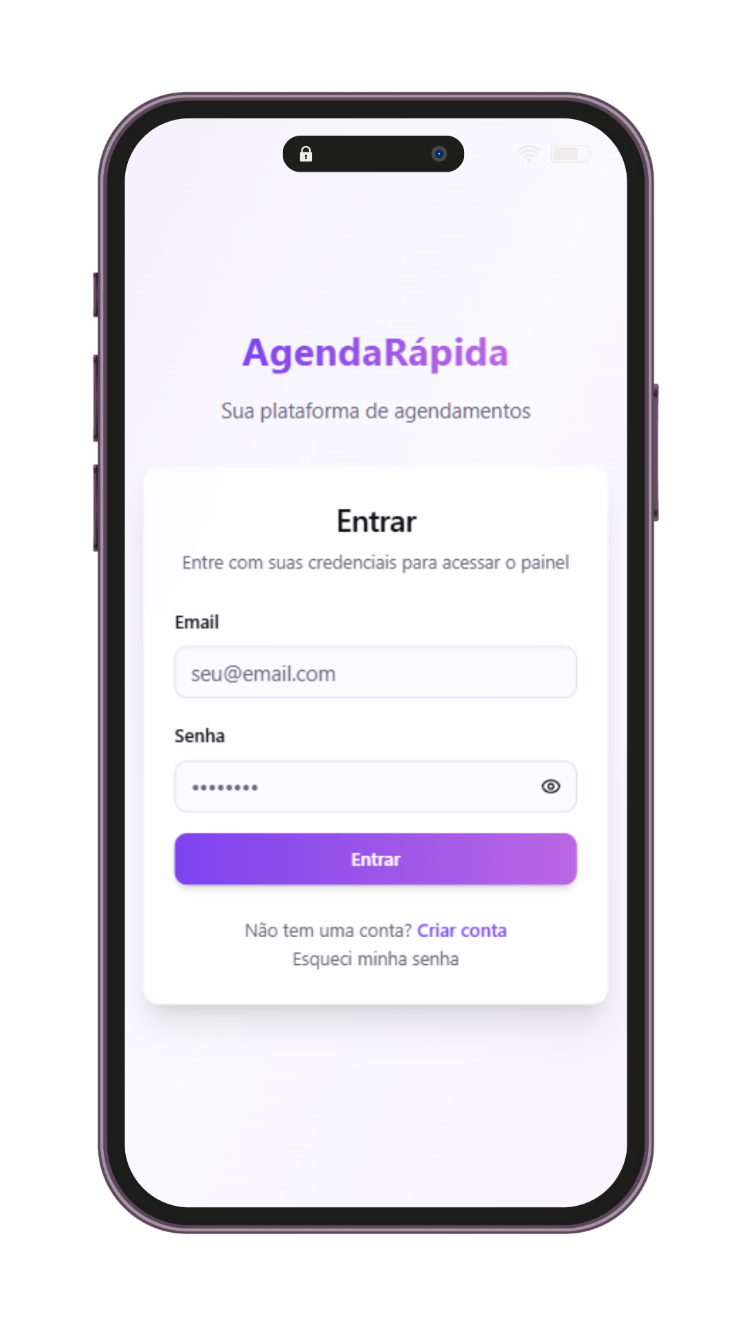 Você não precisa de planilha, nem entender de sistema. Com o AgendaRápida, você cria sua loja, cadastra horários e deixa o cliente agendar sozinho. Enquanto você foca no serviço, o app cuida da organização.